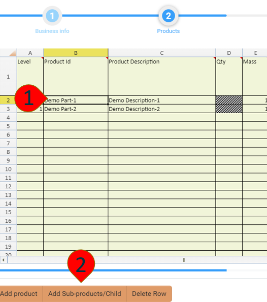 1 (one) Sub-Product Demo SP-1D will have 2 (two) Sub-Products and those will have materials and substances