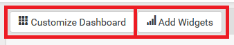 The layout of dashboard can be altered by selecting the Customize Dashboard button. Further widgets can be added to the Dashboard by selecting the Add Widgets button.