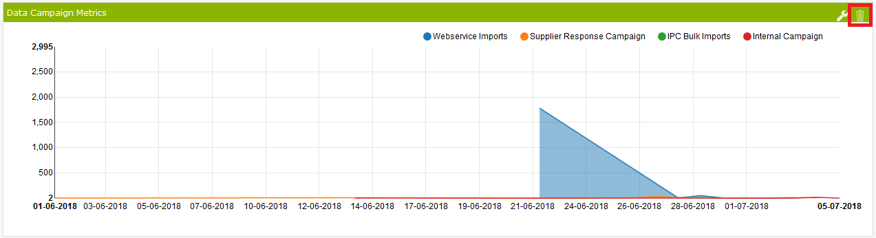Widgets can be removed from the Dashboard by clicking on the trash icon in the header bar of each widget