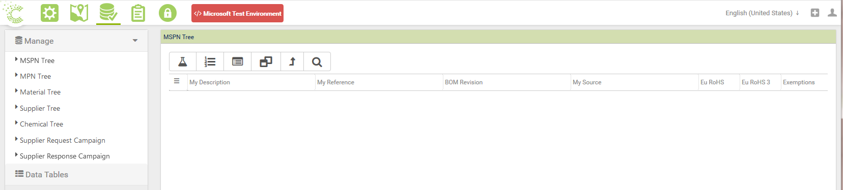 Search, manage and edit MSPN items, MPNs, Suppliers and Chemicals. Additionaly the Request/Response Campaign can be accessed from here also.
