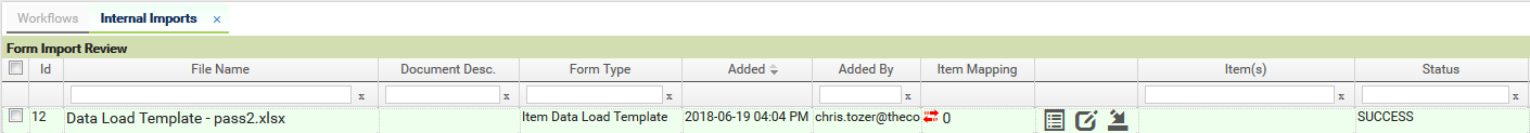 If successful the newly imported template will appear in the top line of the grid with a status of Success