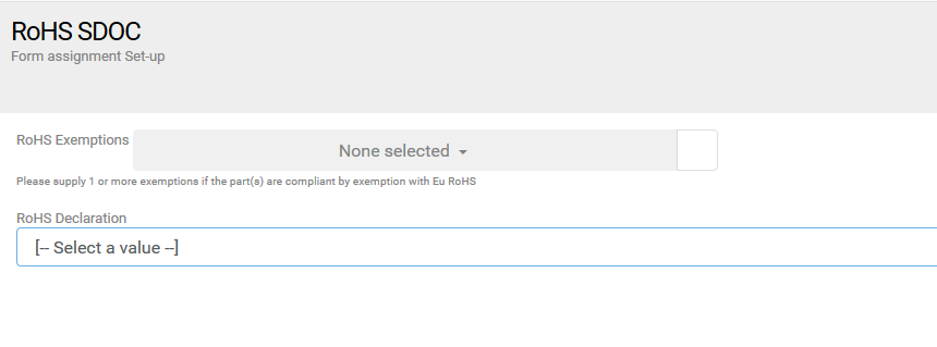 If the form type is a valid IPC form CMAP will identify and set the format. If the form type is not automatically recognised you should manually select type from drop down list. Supplier documents should be set to either RoHS SDOC or REACH SDOC according to the scope of the document supplied.