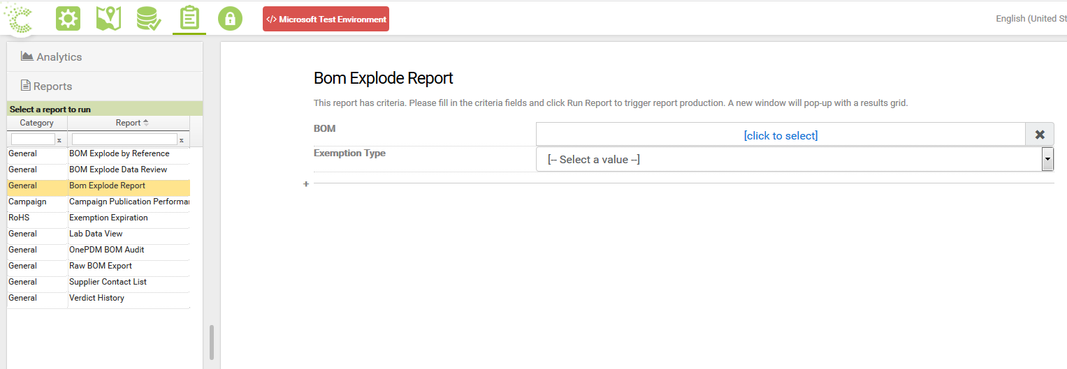 To run a report, select an entry from the list on the left hand side. A description along with criteria (if available) will be shown on the right hand side. If criteria are displayed, entry a value for them, and when done, click on the 'Run report' button at the bottom of the page.