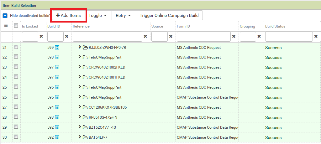 Step 4 - The items will then be added to the campaign queue. The request will process automatically within 60 minutes but to process the requests immediately, click the 'Trigger Online Campaign Build' button at the top of the page.